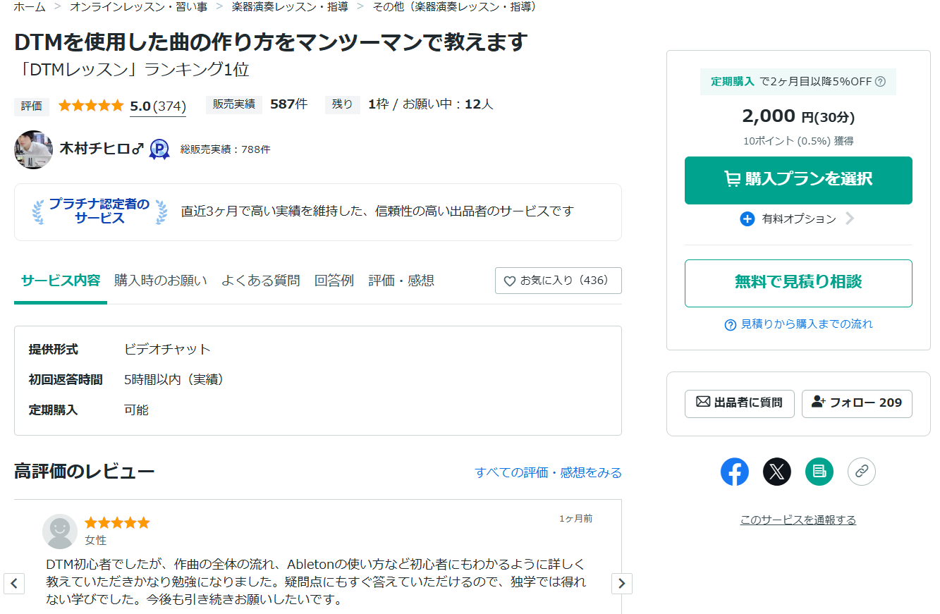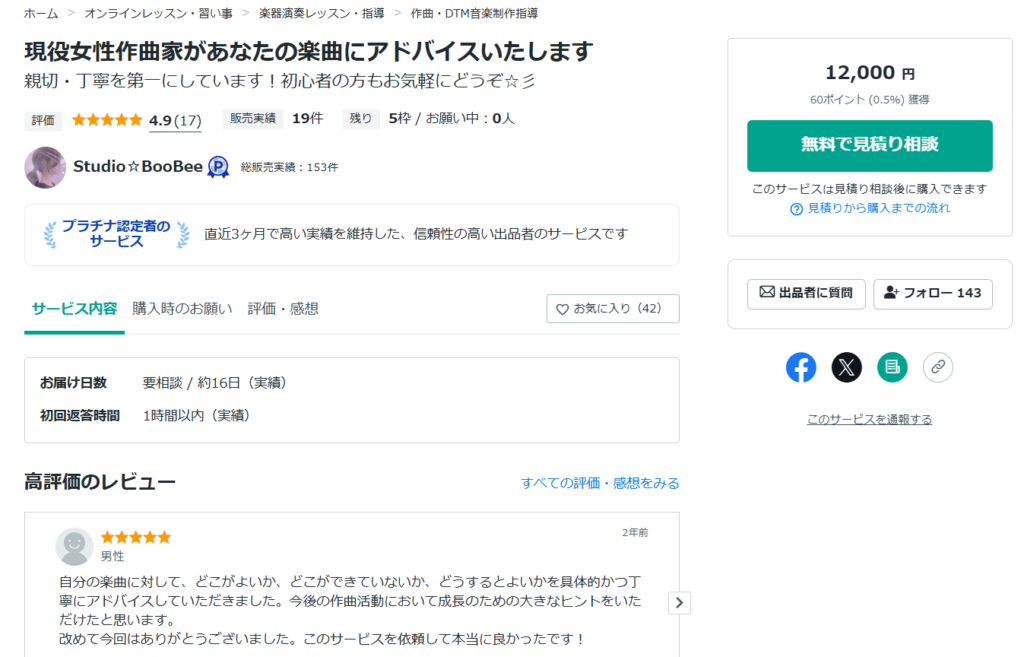ココナラ-プロが集まる日本最大級のスキルマーケット-|作曲・DTM音楽制作指導