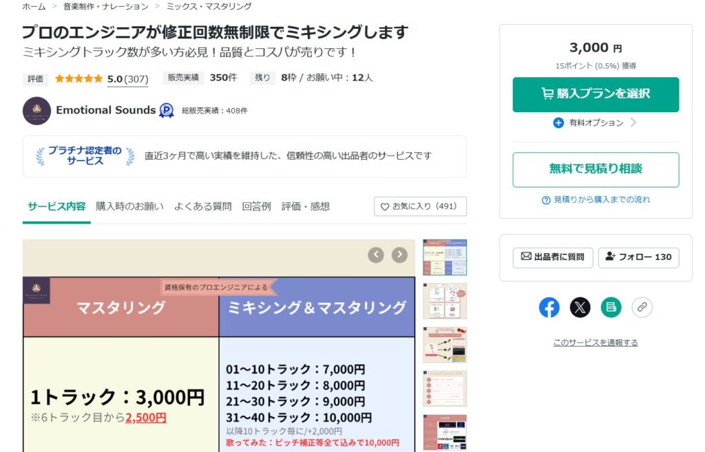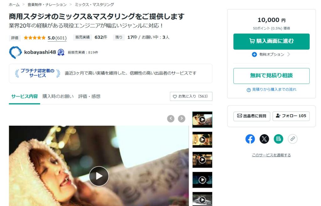 ココナラ-プロが集まる日本最大級のスキルマーケット-|ミックス・マスタリング依頼
