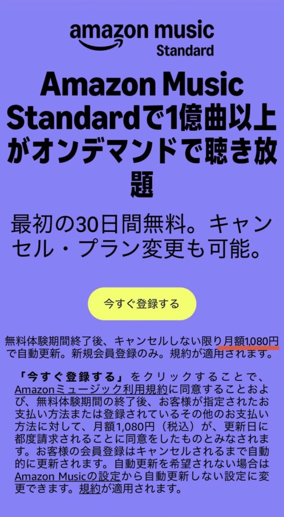 音楽だけ聴ければOKという場合は、新プランであるAmazon Music Standard公式Webサイトから申し込むのが正解です。
